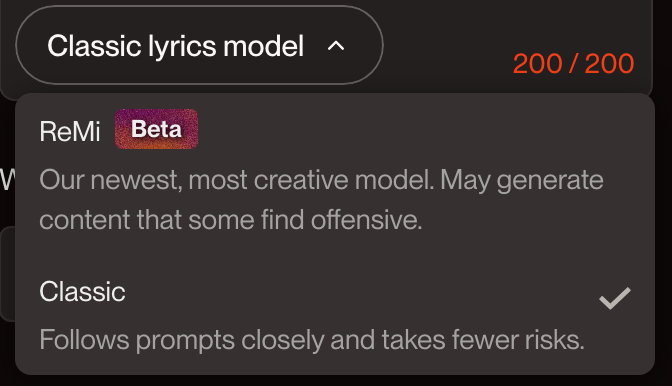 "Custom Mode"를 활성화하면 가사를 입력할 수 있으며,