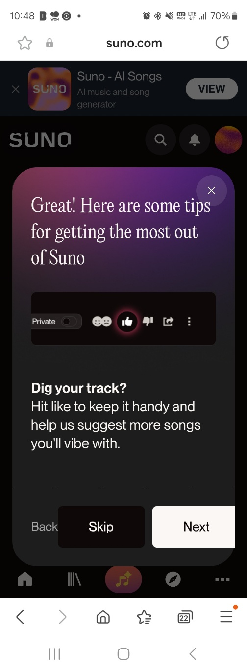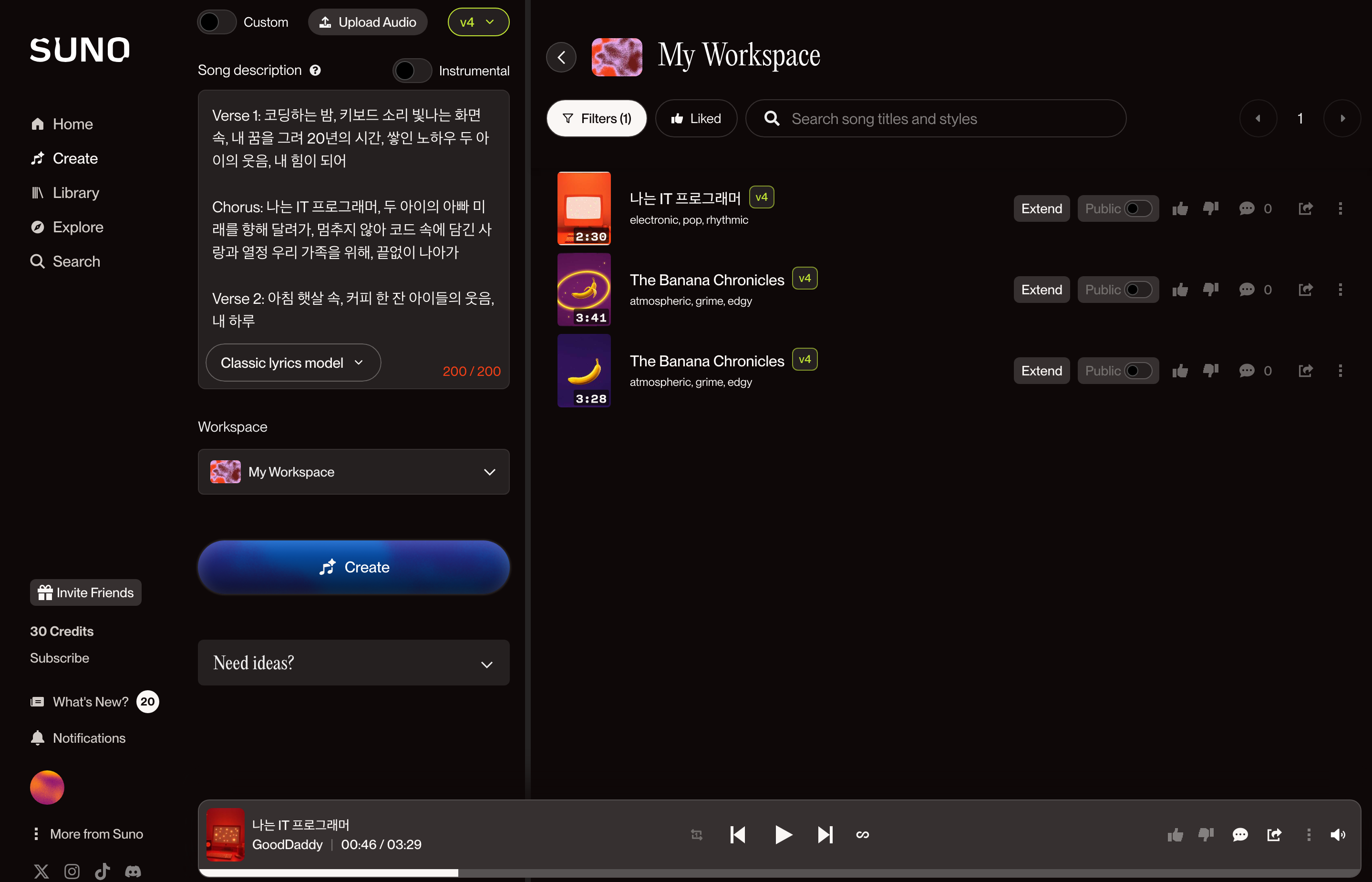 낮에 폰으로 회원가입하고 생성 누르기만 하니 10초만에 2곡을 바로 만들어 주네요