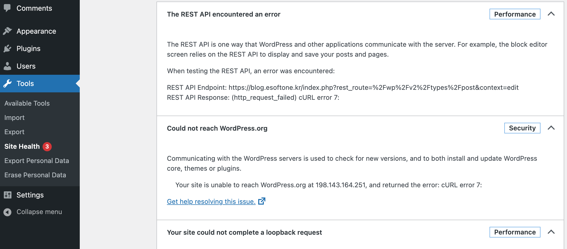 5. 보안 플러그인 일시 비활성화: 일부 보안 플러그인이 아웃바운드 연결을 차단할 수 있습니다. 문제 해결을 위해 일시적으로 비활성화해 보세요.