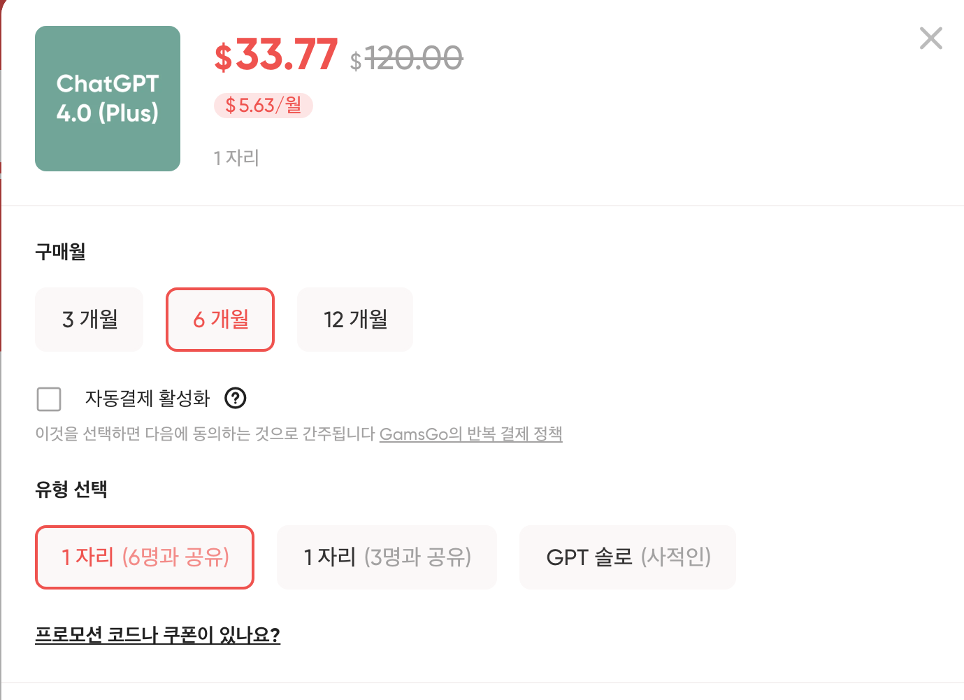 겜스고(GamsGo)는 다양한 유료 서비스 계정을 공유할 수 있는 플랫폼으로, 챗GPT를 포함한 여러 프리미엄 서비스를 저렴한 가격에 이용할 수 있게 해 줍니다. 사용하기 편한 사용자 화면과 고객센터 회신도 빨라서 대부분 사람들에게 인기를 끌고 있습니다.