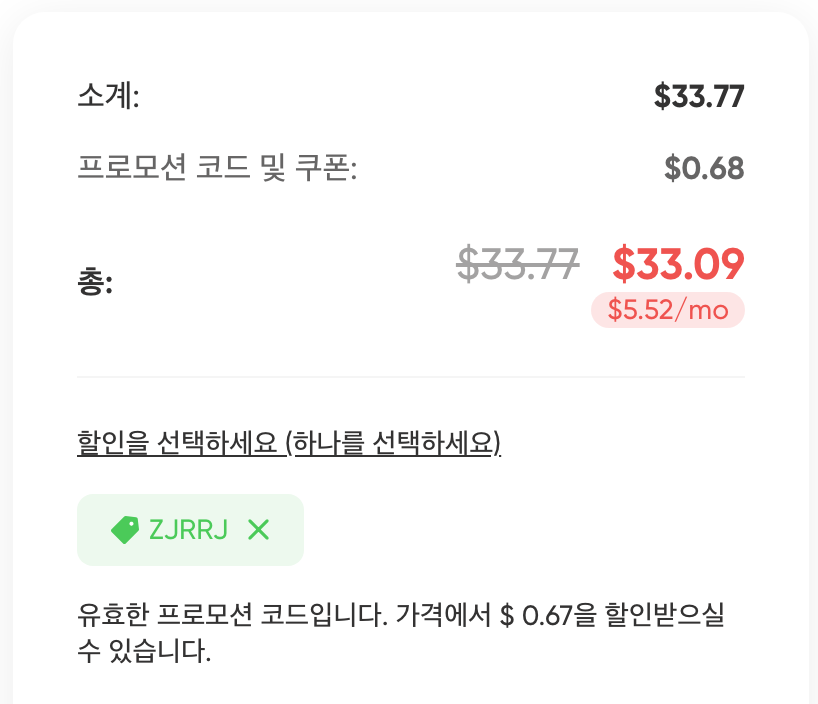 3개월 $16.65 + 프로모션 할인 코드 (최대 5%) 👇 복사