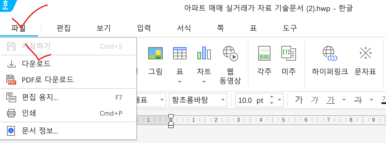 업로드된 HWP 파일을 편집하기 위해 먼저 파일을 열어야 합니다.