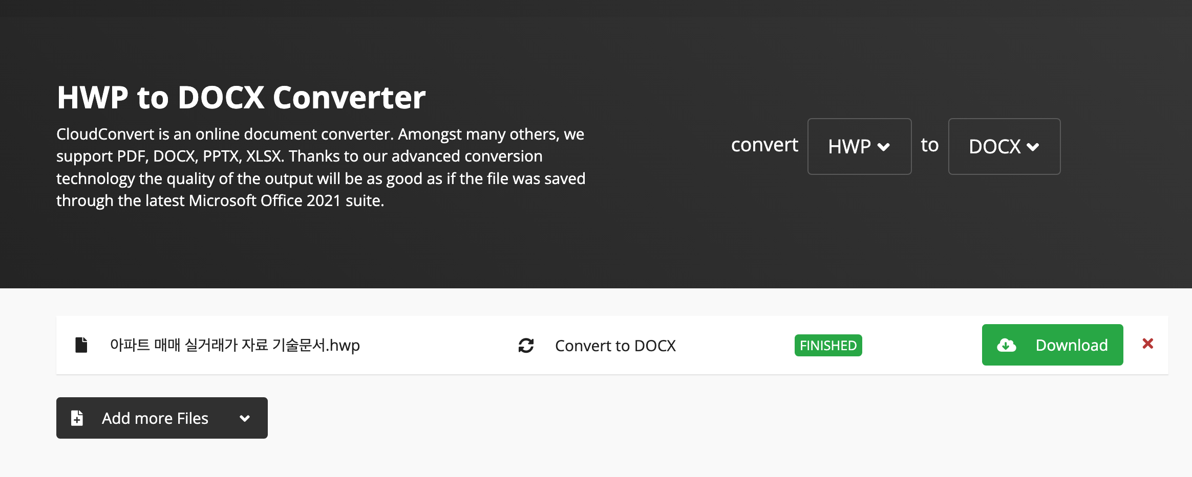 - 온라인 변환 서비스 이용(CloudConvert 등)