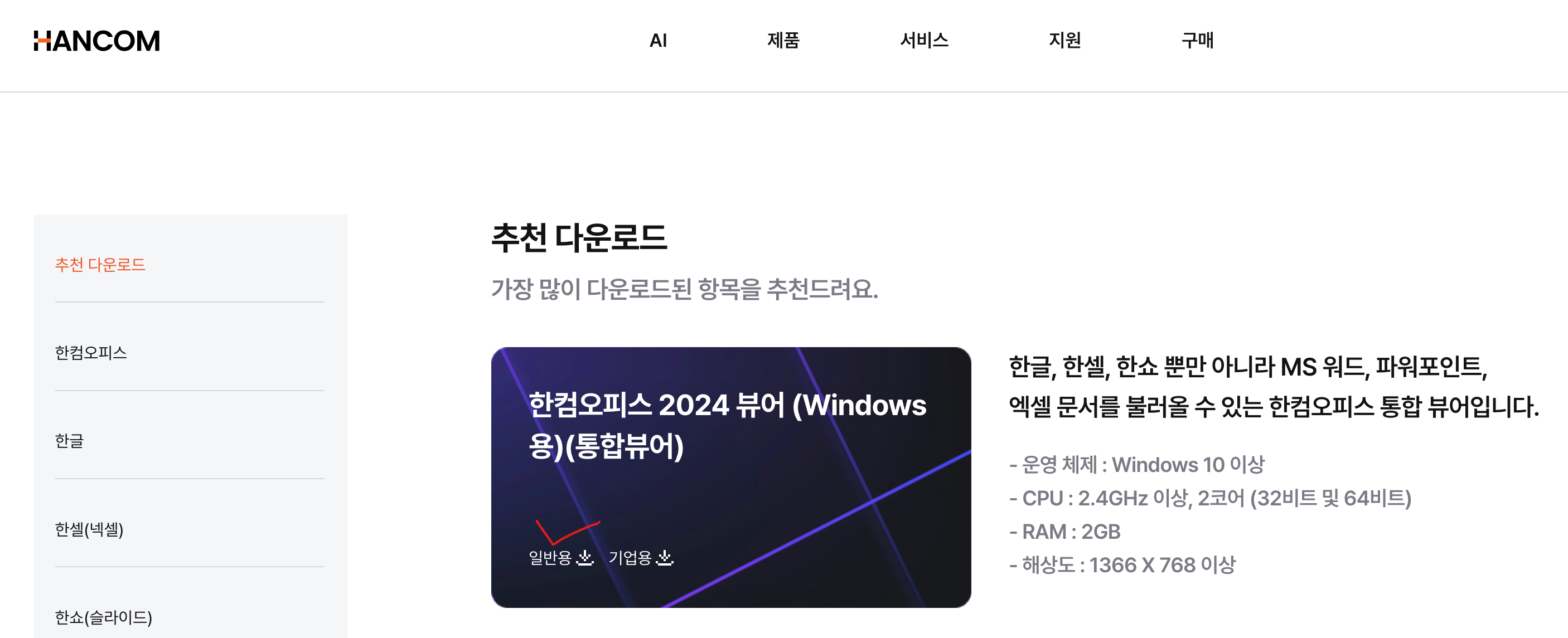 - '다운로드 센터'에서 '한글 뷰어' 검색