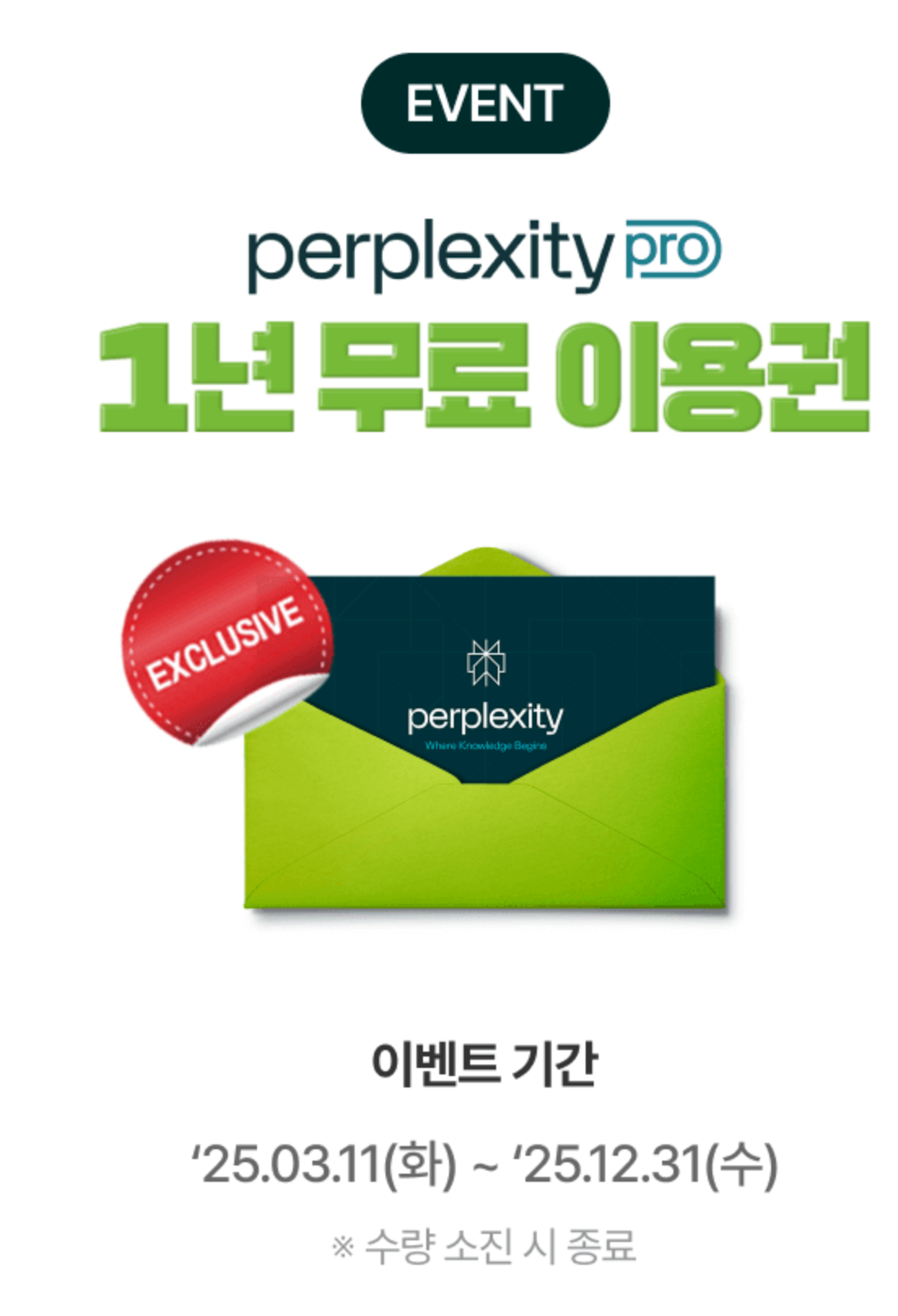 NH투자증권의 퍼플렉시티 1년 무료 구독 이벤트는 투자에 관심 있는 분들에게 AI 검색 도구를 활용할 수 있는 좋은 기회입니다. 퍼플렉시티의 고급 AI 기능을 통해 더 정확하고 깊이 있는 정보를 얻을 수 있으며, 이는 투자 결정에도 도움이 될 수 있습니다. 한정된 수량으로 진행되는 이벤트이니 관심 있으신 분들은 서둘러 참여하시기 바랍니다!