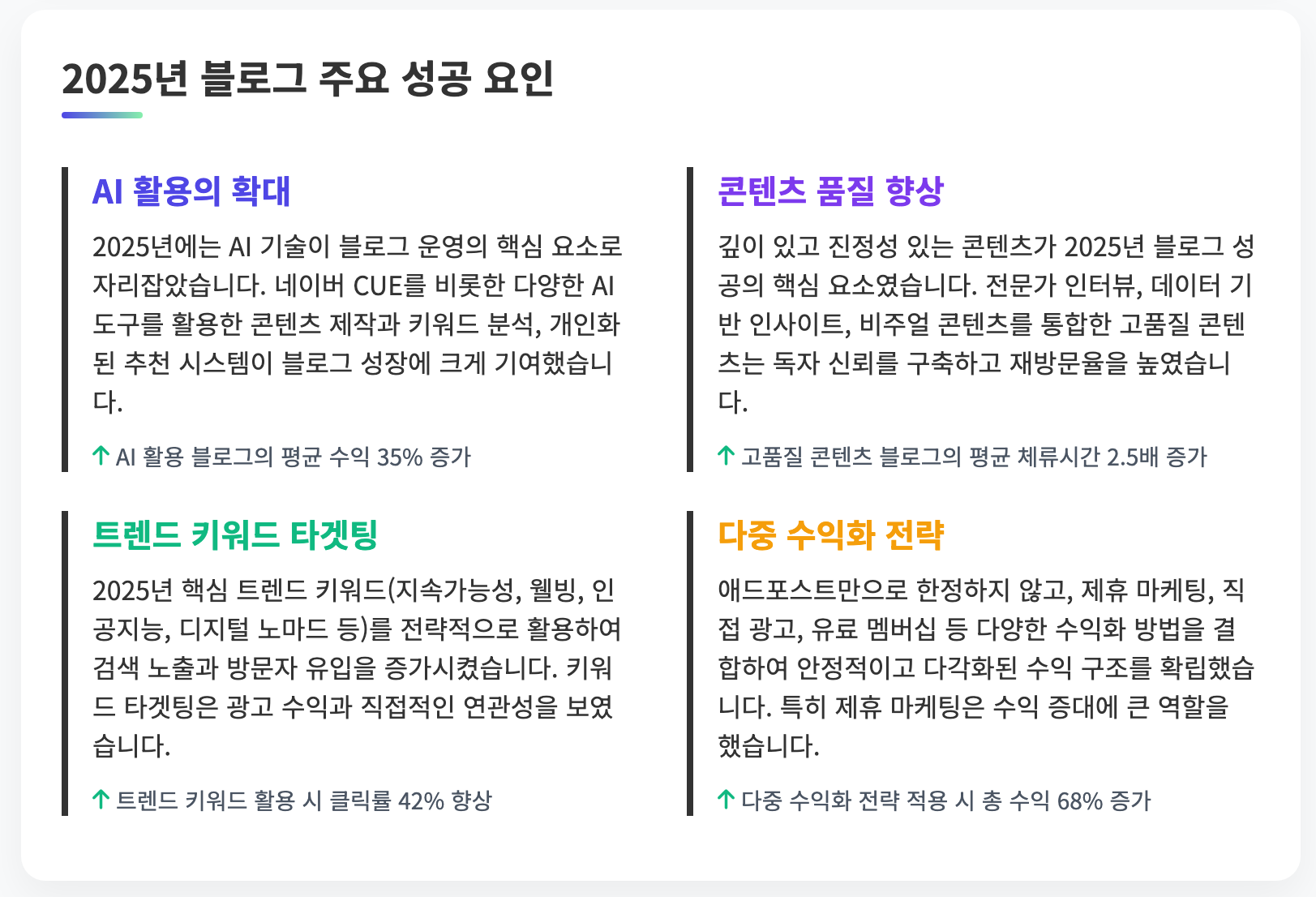 디지털 콘텐츠 소비는 꾸준히 증가하고 있으며, 특히 전문적인 정보와 솔루션을 제공하는 블로그에 대한 수요는 계속해서 높아지고 있습니다. 2025년 현재, 블로그는 단순한 일기장이 아닌 다양한 수익을 창출하는 디지털 자산으로 자리 잡았습니다.