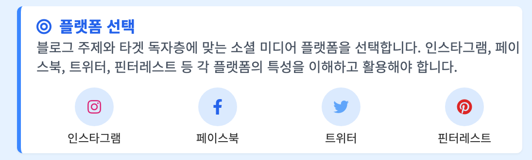 - 플랫폼 선택: 블로그 주제와 타겟 독자층에 맞는 소셜 미디어 플랫폼을 선택합니다. 인스타그램, 페이스북, 트위터, 핀터레스트 등 각 플랫폼의 특성을 이해하고 활용해야 합니다.