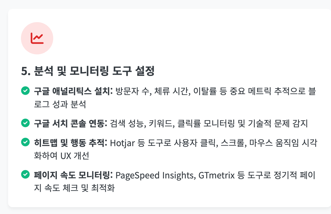 블로그 성능을 지속적으로 측정하고 개선하기 위한 분석 도구를 설정합니다.