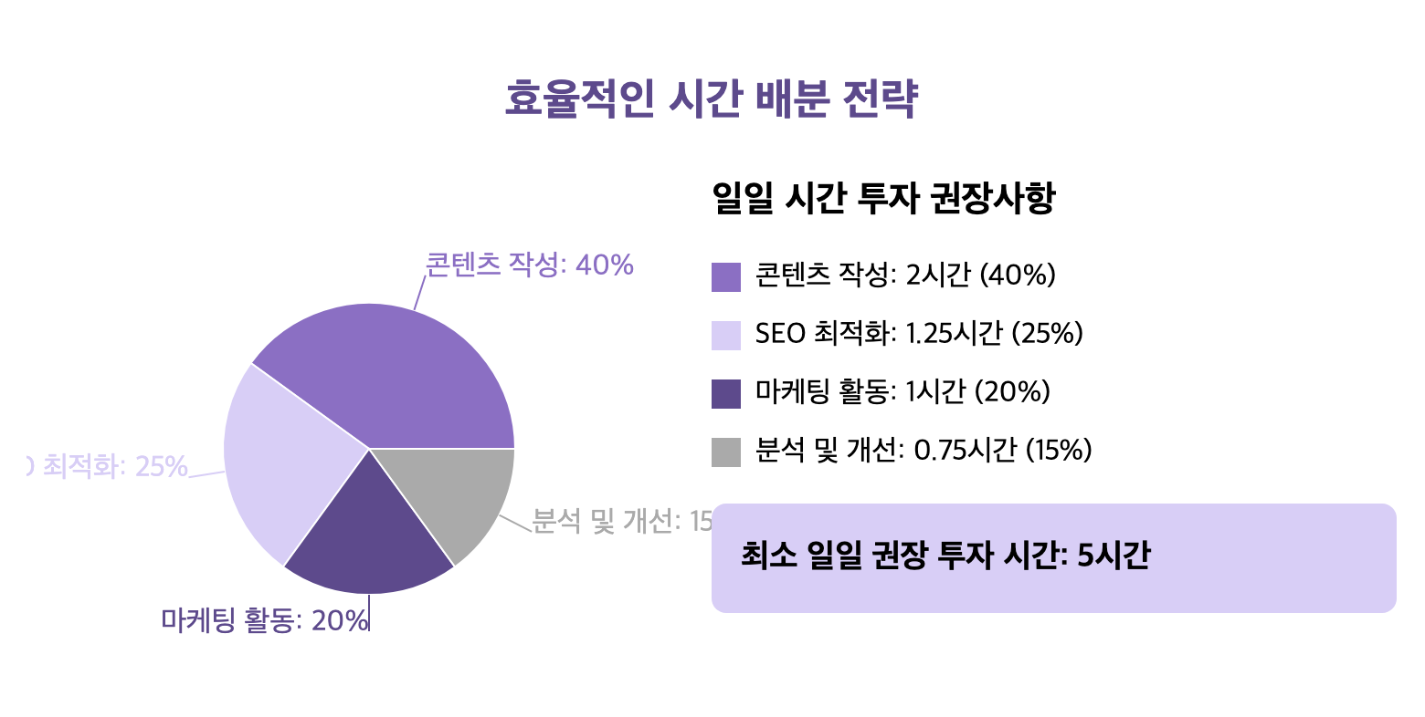 블로그의 성공을 위해서는 키워드 연구와 SEO(검색 엔진 최적화)가 필수적입니다. 첫 30일 동안은 키워드 연구를 통해 타겟 독자가 검색하는 주요 키워드를 파악하고, 이를 바탕으로 콘텐츠를 작성합니다. SEO 학습을 통해 블로그 글이 검색 엔진에서 상위에 노출될 수 있도록 최적화합니다.