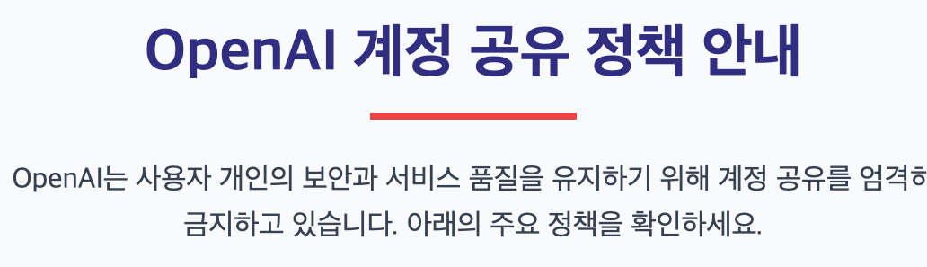 하지만 OpenAI의 약관을 살펴보면, 계정 공유와 관련된 명확한 정책이 존재합니다.