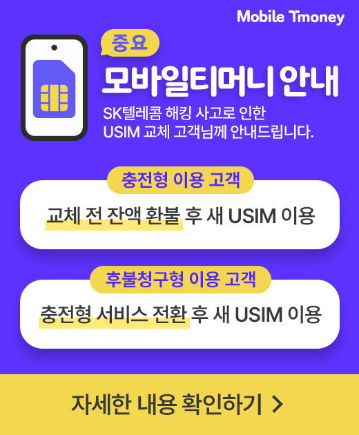 - 모바일 티머니, 캐시비 등 사용자는 유심 교체 전에 잔액을 모두 소진하거나, 지하철역 등에서 환불받으세요.