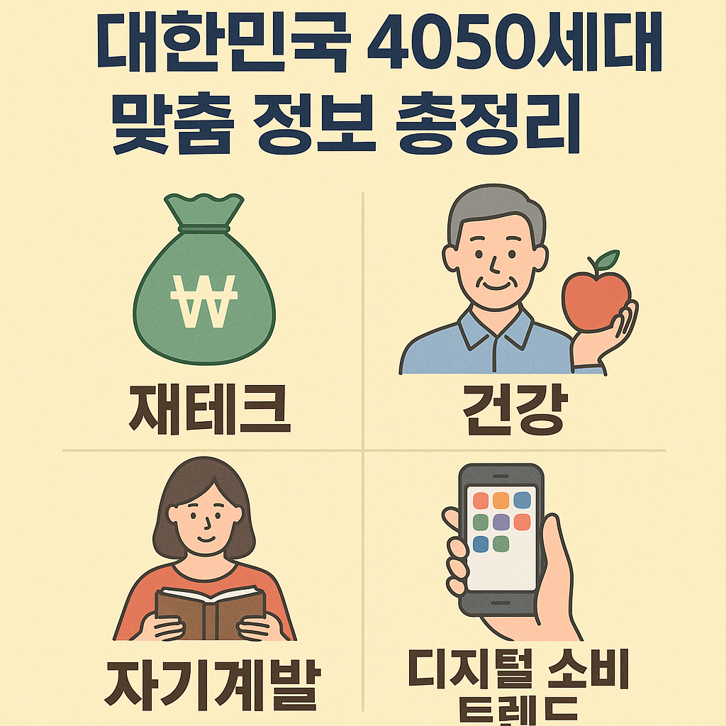 이 글은 '4050세대 맞춤 정보', '중장년 관심사', '노후 준비', '재테크', '자기계발', '건강 관리' 등 키워드에 최적화되어 있습니다. 4050세대가 꼭 알아야 할 실질적 정보와 최신 트렌드를 한눈에 확인해보세요!