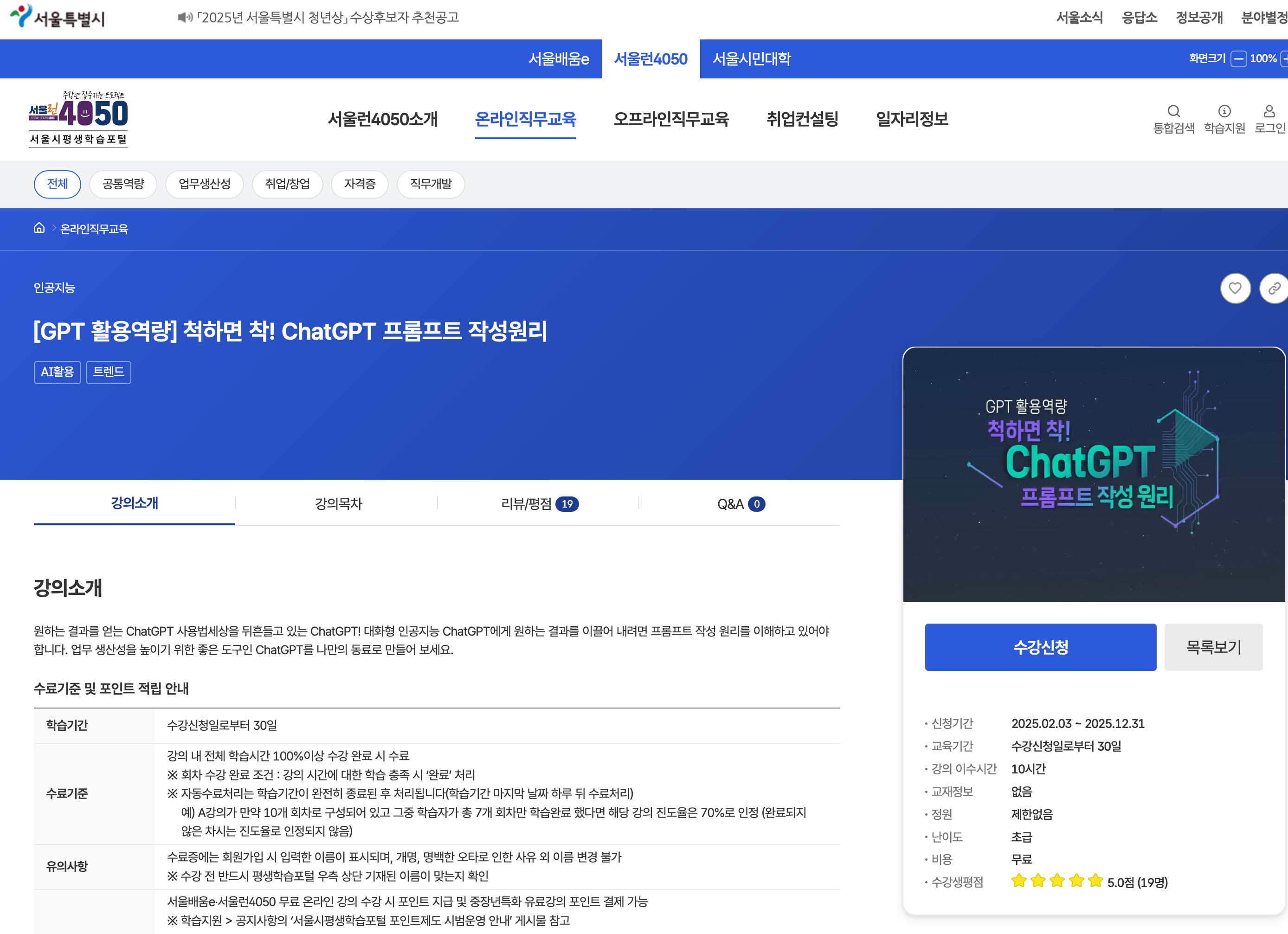 - 직업 역량 강화: 서울런4050 등 평생교육 플랫폼 적극 활용