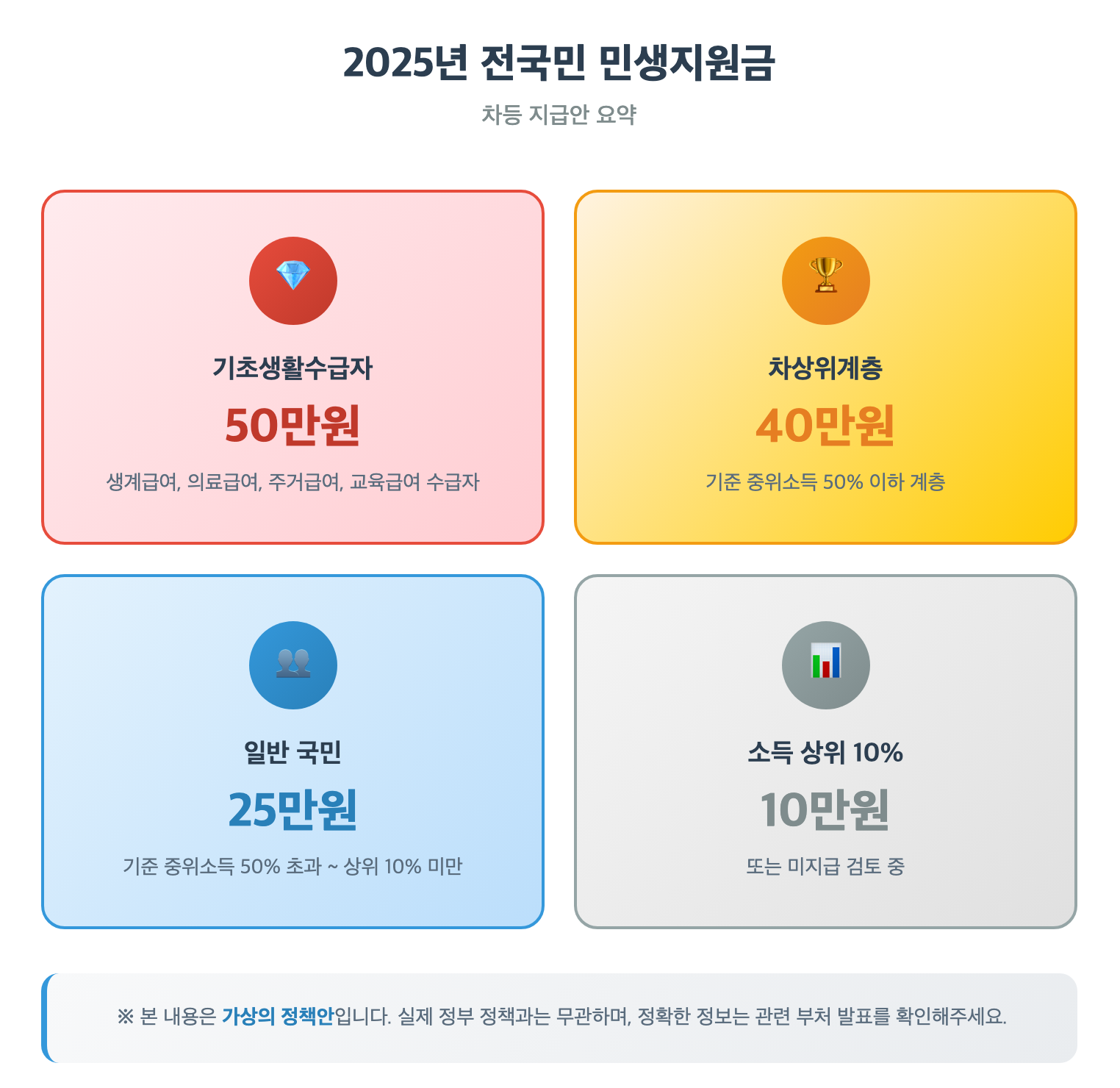 - 고소득층(상위 10~20%): 지급 대상에서 제외될 가능성도 논의 중