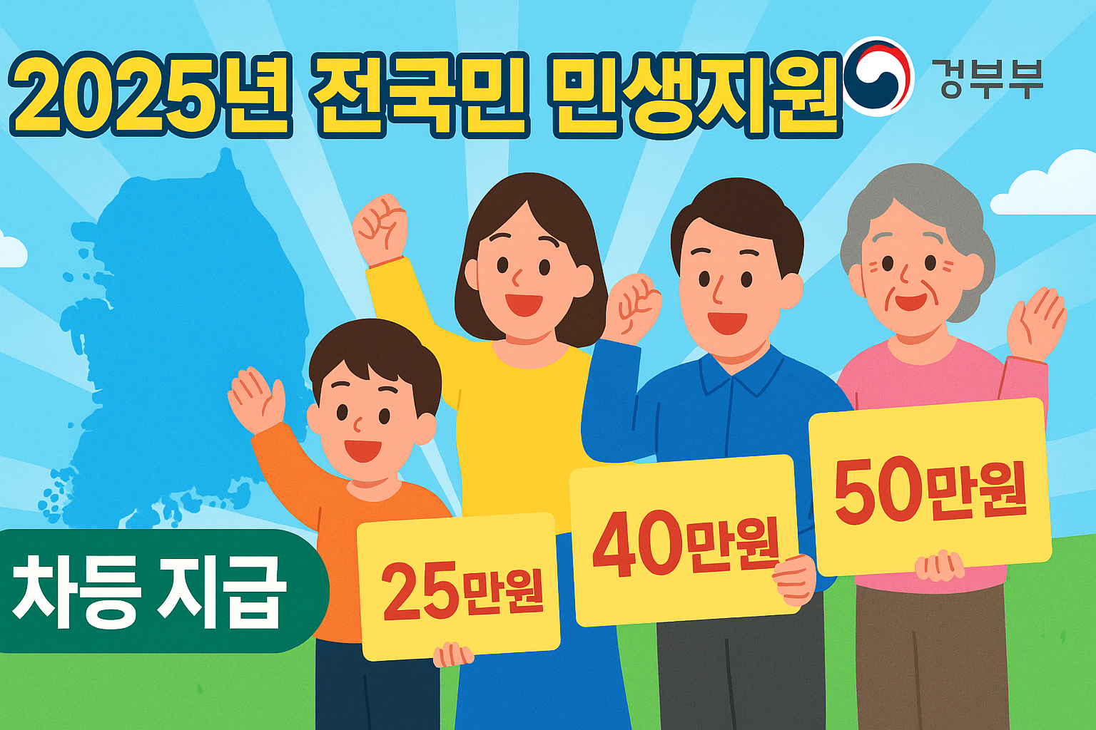 2025년 전국민 민생지원금 25만원 지급, 소득별 차등 지원(10~50만원) 최신 정보 총정리! 지급 대상, 신청 방법, 일정, 실용 팁까지 한눈에 확인하세요.