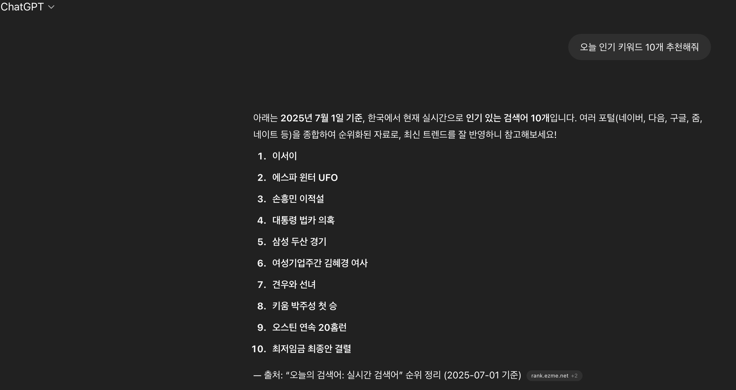 - 매일 새로운 소재가 고민이라면, GPT에게 “오늘 인기 키워드 10개 추천해줘”라고 물어보세요.