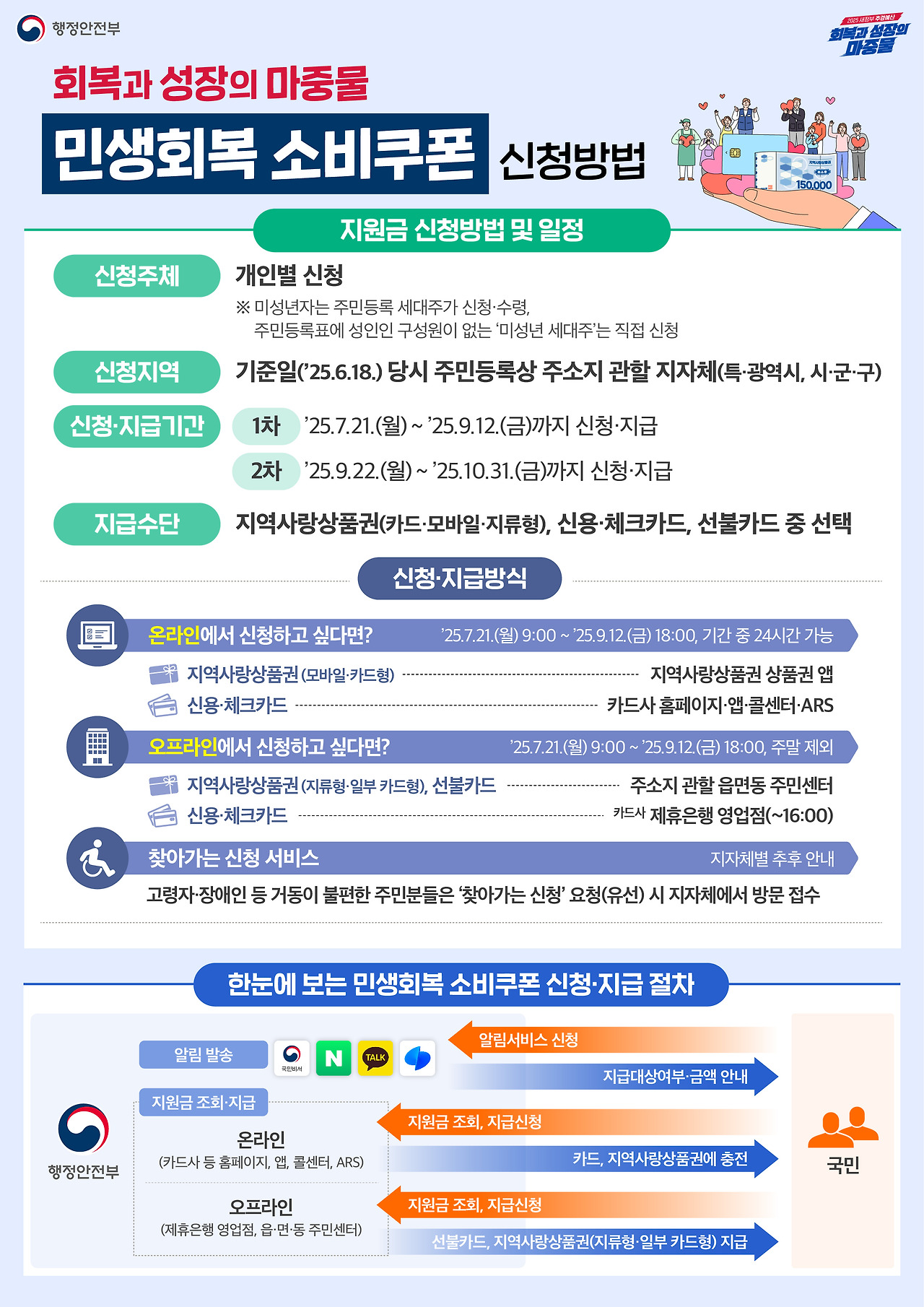 - 오프라인: 주소지 관할 주민센터, 카드 연계 은행 영업점