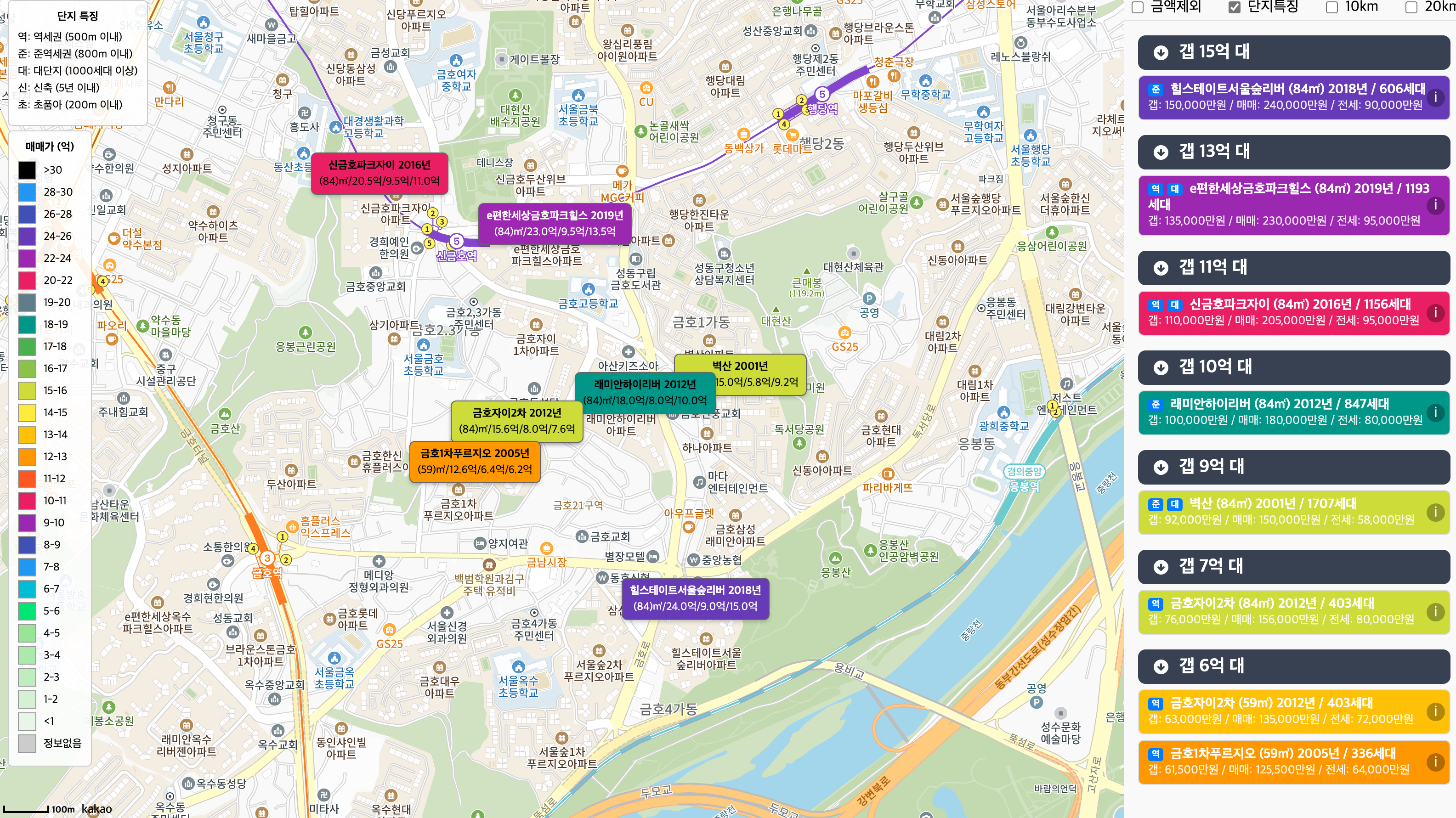 - 단지별 상세 정보: 면적별, 층별 가격 비교