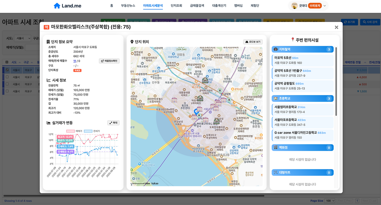 land.me.kr은 실시간 아파트 시세 조회가 가능한 전문 플랫폼이에요. 국토교통부 실거래가 데이터를 기반으로 하여 신뢰성 높은 정보를 제공해요.