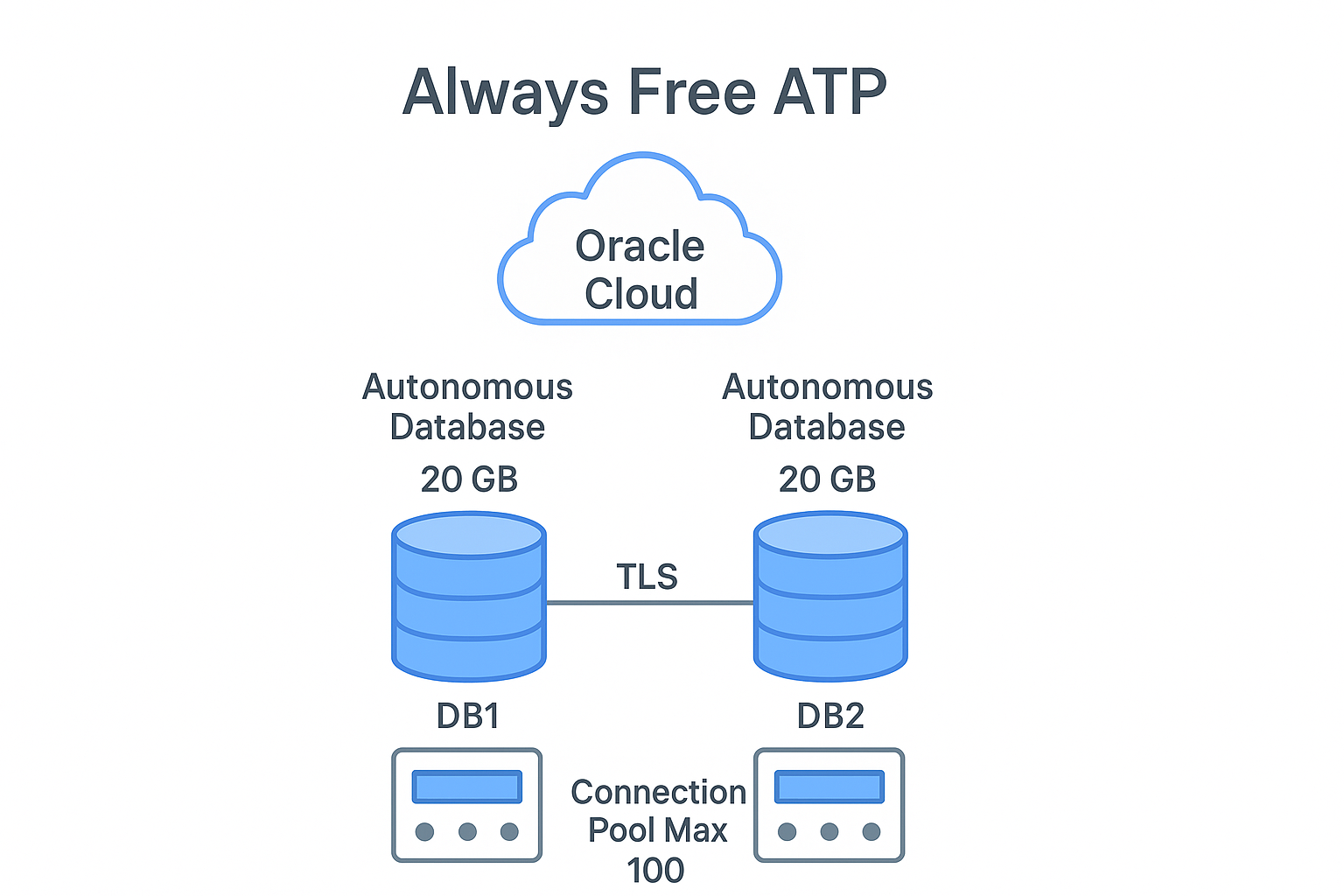 Oracle Cloud의 Always Free에서 Autonomous Transaction Processing(ATP)을 최대 2개 생성해 각각 20GB 스토리지로 운영할 수 있으며, 실사용 관점에서 동시 접속(세션/커넥션 수)과 연결 풀 설정을 적절히 구성하면 약 30개 수준의 동시 연결 시나리오도 가능합니다. 다만 Oracle의 공식 Always Free 문서와 사용자 경험에 따르면 세션 제한과 네트워크/리소스 제한이 존재하므로 커넥션 풀 최적화, APEX/SQL Developer 접속 동시성 분배, 리소스 소비 쿼리 최소화가 필수예요.