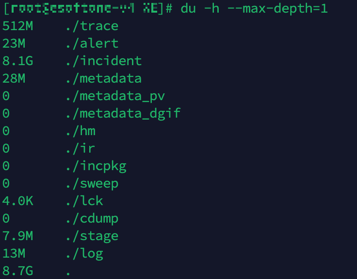 ADR 관리 툴인 adrci로 오래된 진단 데이터를 삭제할 수 있습니다.
