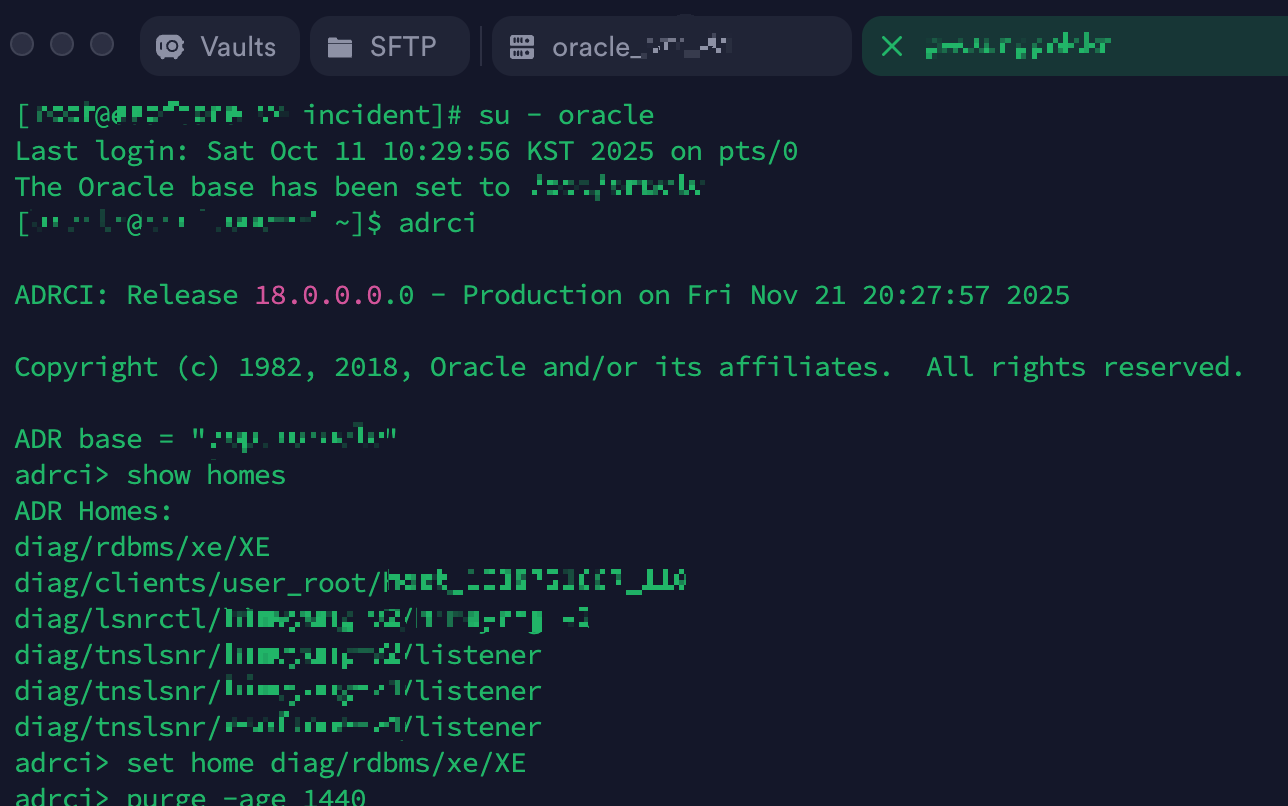 ✅ 1. ADRCI(Automatic Diagnostic Repository Command Interface) 사용