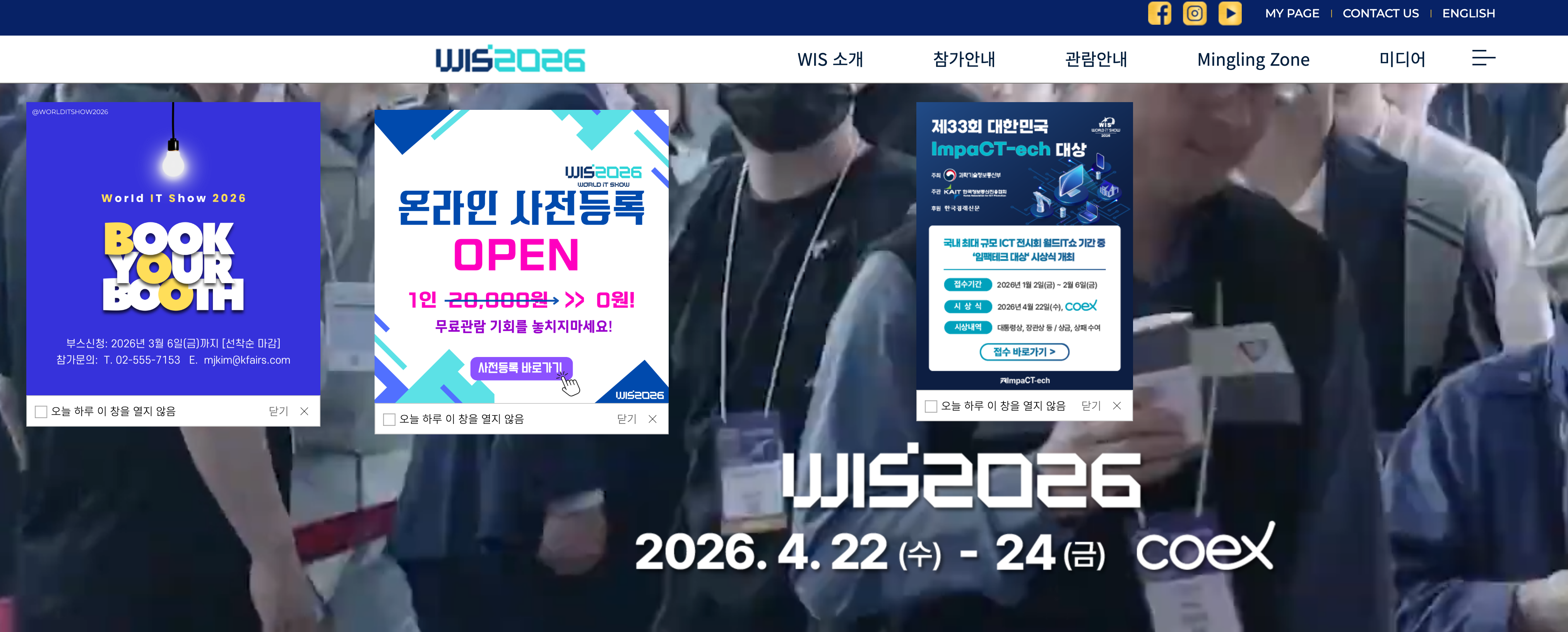 | WIS 2026 (World IT Show) | 4/22 ~ 4/24 | 서울 코엑스 | “4월 코엑스 개최”로 안내되는 국내 대표 IT 전시회. worlditshow.co |