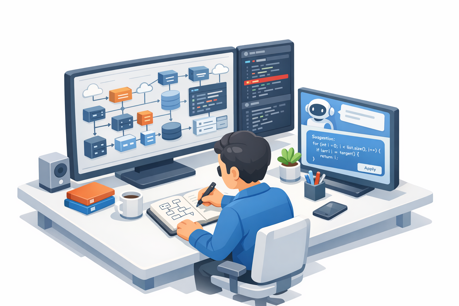 2026년 개발자에게 가장 먼저 요구되는 역량은 더 이상 '얼마나 많은 코드를 직접 작성할 수 있는가'가 아니에요. AI가 대신 만들어낸 결과물을 올바르게 이해하고 평가하며, 전체 시스템 안에서 의미 있게 연결할 수 있는 능력이 핵심이 되었죠. AI가 코드를 대신 작성하더라도 그 코드가 왜 그렇게 작성되었는지, 어떤 전제를 깔고 있는지, 실제 비즈니스 문제를 제대로 해결하고 있는지를 판단하는 책임은 여전히 개발자에게 남아 있어요.