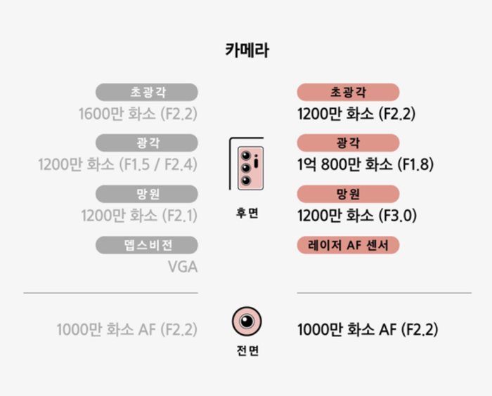 ■ Galaxy Note20 대 Note10+ 스펙 비교