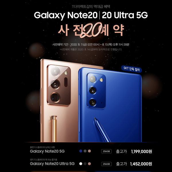 삼성 갤럭시 노트 20 이 통신사마다 현재 사전 구매를 시작했습니다.