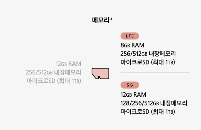 갤럭시 20Ultra는 전작과 메모리 동일하네요