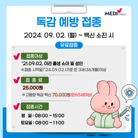 - 접종기간 : 2024.10.11.(금) ~ 2025.4.30.(수)