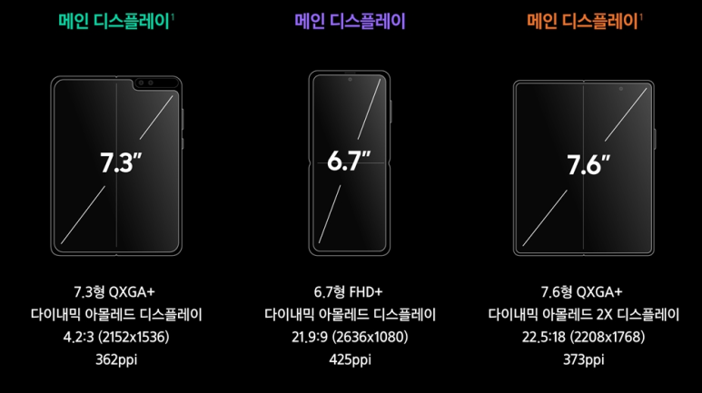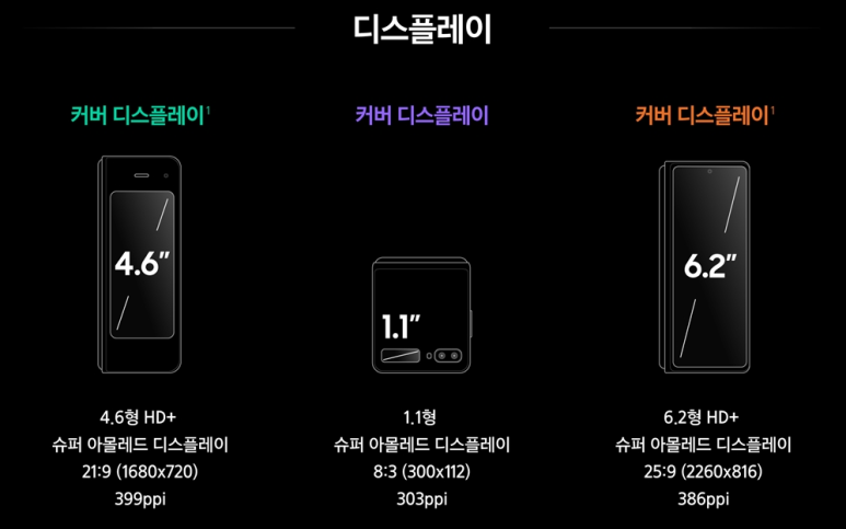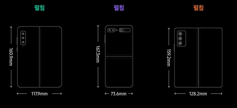 아래 세 종류의 폴더블 폰을 한눈에 살펴보도록 하겠습니다.