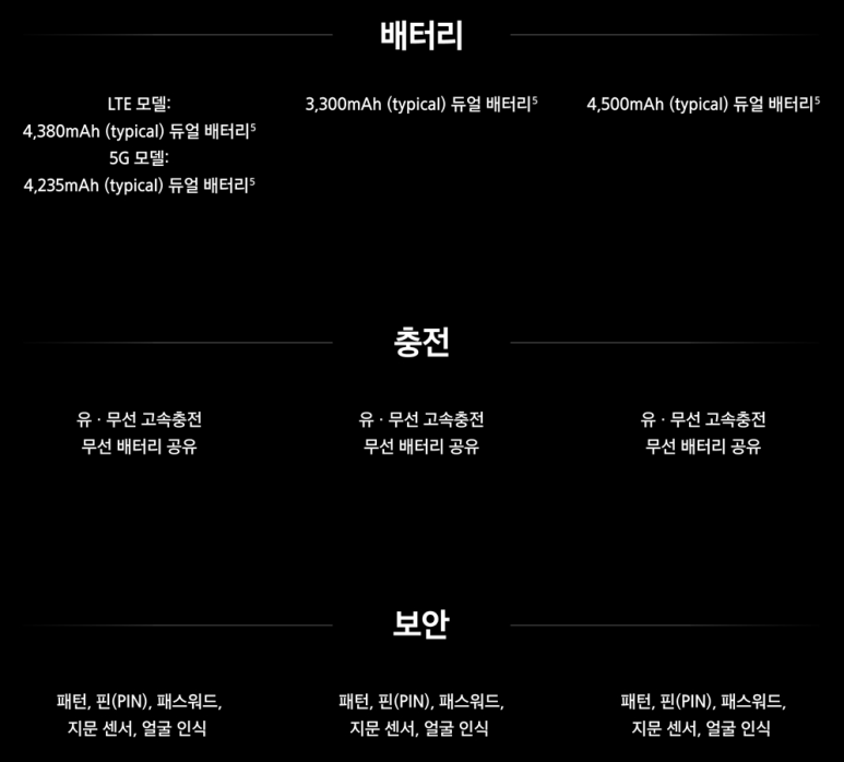 배터리 용량은 화면 크기에 맞게 조금 증가되었지만 사용시간에는 변화가 없어 보입니다.