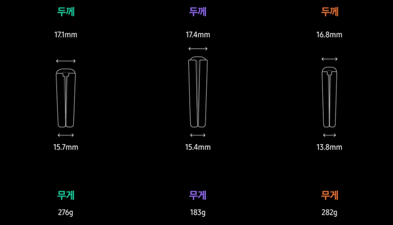 갤럭시 폴드2는 전작 대비 무게는 살짝 늘었지만 접었을 때 두께는 다소 줄어들었습니다.