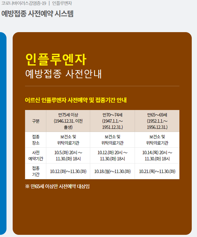 만 65~69세(1952.1.1.~1956.12.31. 출생자): 2021. 10. 21.(목)~2022. 2. 28.(월)