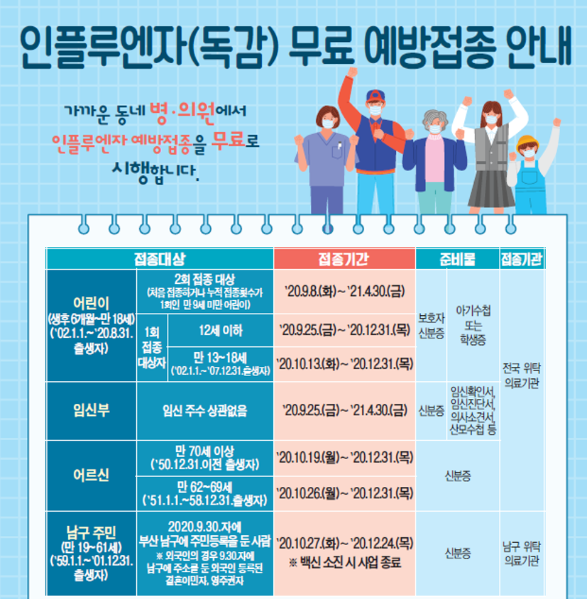 ※ 임신부의 인플루엔자 예방접종은 임신 주수에 상관없이 접종 가능합니다.