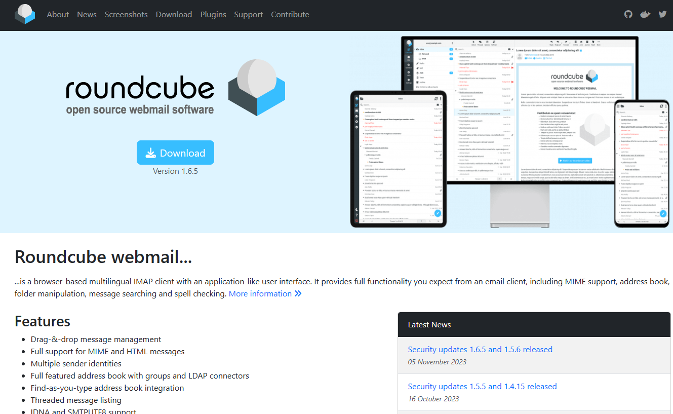 Roundcube는 주로 IMAP(Internet Message Access Protocol)와 함께 작동하므로 사용자는 서버에서 직접 이메일에 액세스할 수 있습니다. 즉, 웹메일 클라이언트의 변경 사항은 동일한 이메일 계정에 액세스하는 모든 장치에 반영됩니다.