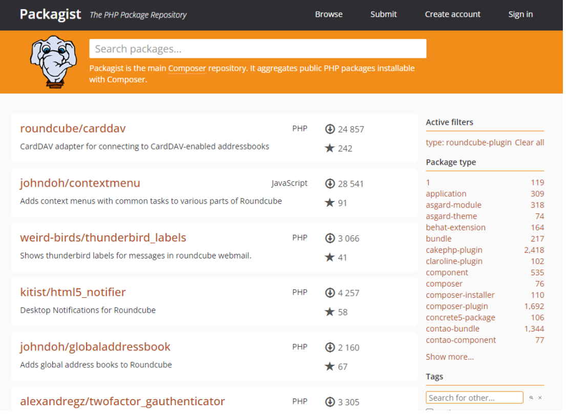 Roundcube webmail... ...is a browser-based multilingual IMAP client with an application-like user interface. It provides full functionality you expect from an email client, including MIME support, address book, folder manipulation, message searching and sp