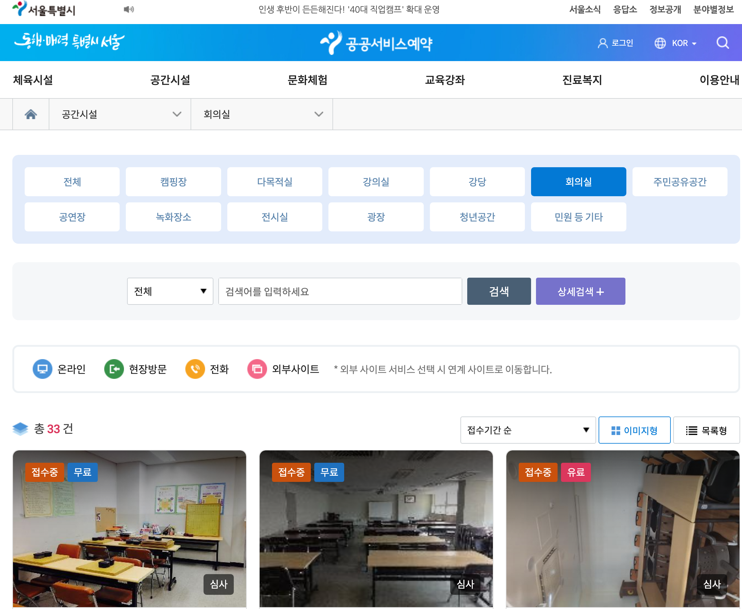 2. 시설 검색: 홈페이지에서 '회의실' 카테고리를 선택한 후, 원하는 지역과 날짜를 입력하여 검색해요. 서울시 내 다양한 회의실 옵션이 제공돼요.