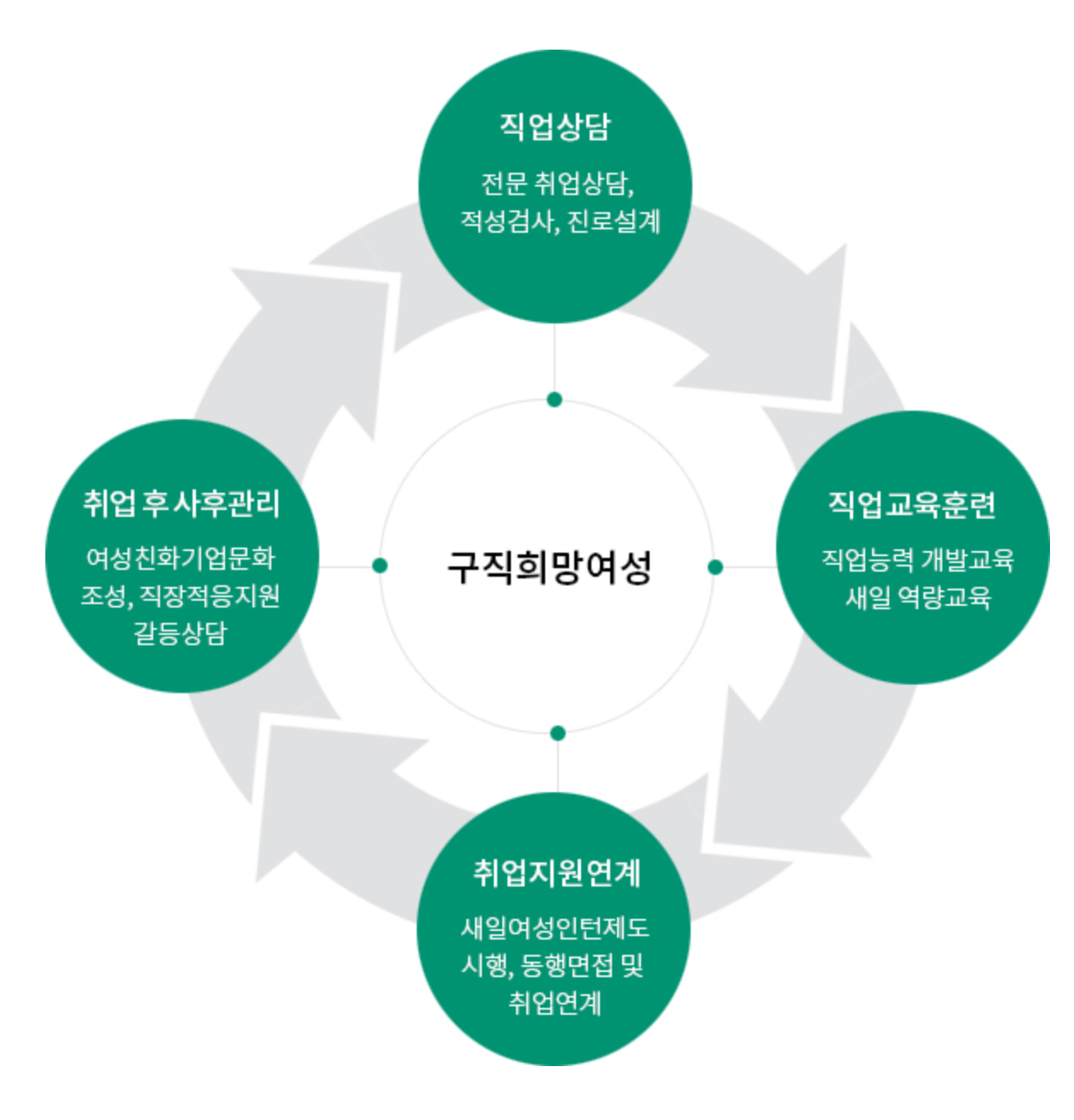 여성새로일하기센터는 경력 단절 여성들에게 맞춤형 직업 상담과 교육을 제공하는 기관이에요. 이 센터는 육아, 가사 등으로 경력이 단절된 여성들이 재취업할 수 있도록 다양한 프로그램을 운영하고 있어요. 이를 통해 직업 교육, 구인/구직 관리, 인턴십, 취창업 지원 등을 종합적으로 제공하고 있답니다.