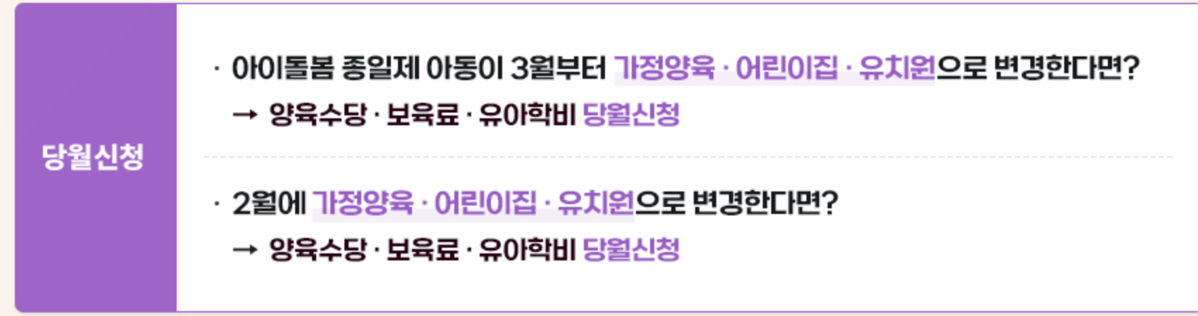 그리고 0~2세 아동이 기본보육에서 연장보육으로 변경하는 경우에 해당돼요.